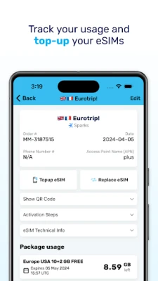 Instantly download and activate the eSIM of your choice as a secondary mobile data SIM while traveling. 🛜