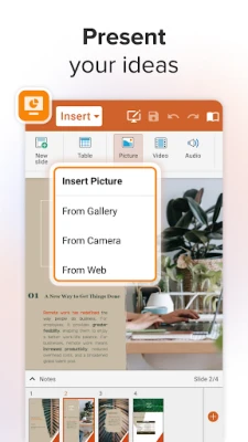 Mobile documents editor for Word docs, Excel Sheets & PowerPoint slides and PDF files at your fingertips.