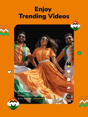 Indulge in the rich tapestry of Indian culture as a Moj user. Explore a diverse range of short videos capturing the essence of the latest events & heartwarming love songs. Immerse yourself in a vast library of Indian content, including Hindi videos and soulful shayari videos.