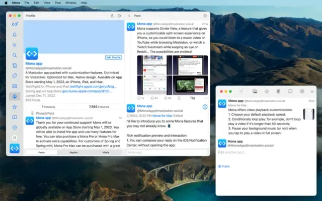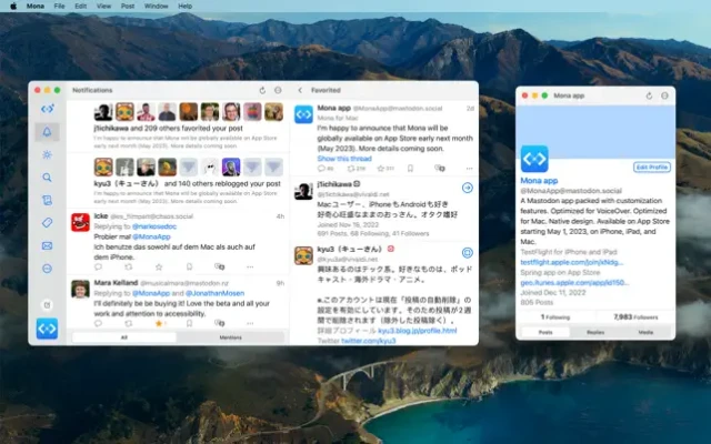 Mona is a highly customizable Mastodon app with VoiceOver optimization and native design.