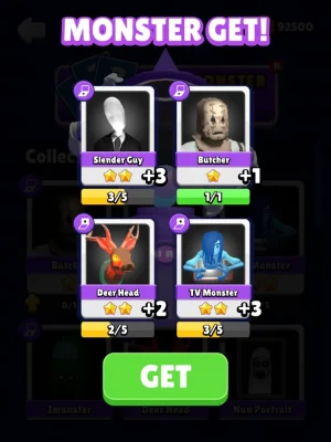 Collect card pieces and level up to strengthen your monster!