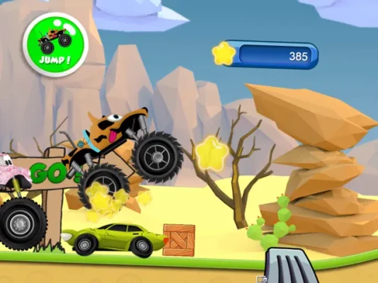 Crush the cars along the course with the monster machines, Collect stars, Fireworks and balloon popping are at the end of each level to give more excitement to the kids playing.