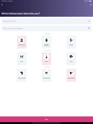 With hundreds of unique Motas and categories, you're sure to find people with the same interests. Love dogs? Play basketball? In a fraternity or sorority? Add them as Motas and you'll find tons of people who are into the same things as you!
