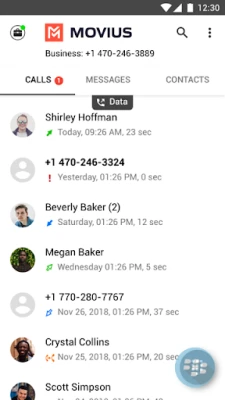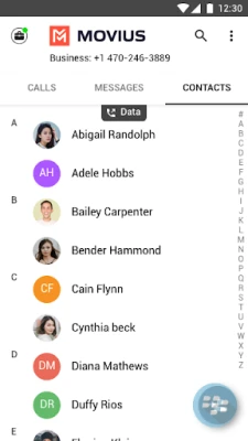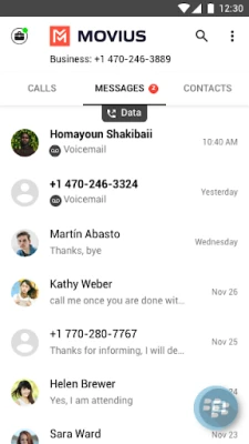 Movius for BlackBerry® is fully integrated with the BlackBerry Dynamics Android SDK and provides policy control for Enterprise IT Administrators. Movius for BlackBerry allows Click-to-dial and Click-to-message functionality for phone numbers appearing in any BlackBerry Dynamics Container Apps such as BlackBerry Work, BlackBerry Access or other third-party Apps.
