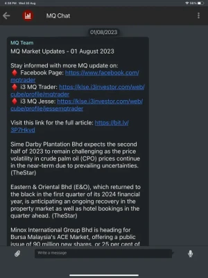 MQ Chat lets you connect and chat with Traders and Investors on the I3investor and MQ Trader platforms. Create personal and group chats, receive notification on daily updates, price alerts, share photos and voice messages, and much more.