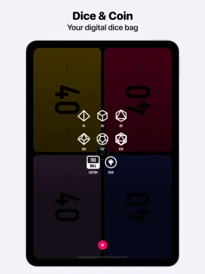 - Roll any custom dice (including D4-D20) or flip a coin