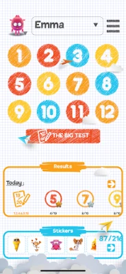 - More than 200 stickers to collect - Write the numbers or use the keypad on flashcards - 1x to 12x multiplication tables - Create up to 8 profiles - Child friendly interface - No advertising - Detailed statistics for each child and multiplication table