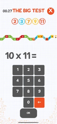 Two game modes: - Work only on a multiplication table - Choose your multiplication tables for "the big test".