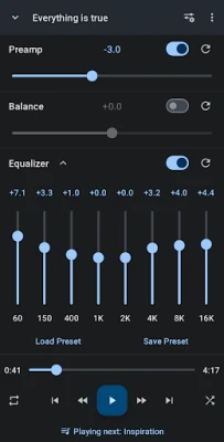 -Equalizer - 8-band graphic equalizer, and preamp and balance control.