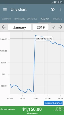 • Easily visualize your data as tables or graphs, understanding your income and expenses in a new way.