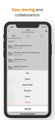 Easily share content with friends, family, and colleagues, or invite them to access your My Cloud NAS for seamless collaboration. My Cloud OS 5 makes it easy to share high-res photos and videos, a single file, or an entire folder using your smartphone or tablet.