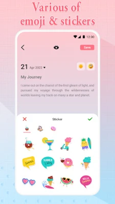 Various expressions and stickers are continuously updated. Make your journal more specific and special