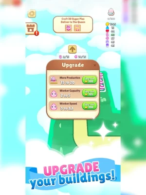 You are an adventurous hero and you set out on a journey to Sweet World to help those in need. In the Sweet World, the Queen and little ones need your help! By improving the land you can return the world back into its glorious days. By unlocking the Castle, you can help the Queen to design it. But first you need to help the Queen with her tasks.Your skills will be needed! You need to gather up resources by cutting, scraping, crushing and much more.