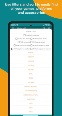 - Fill the information of a game (status, region, time played, copies, note, acquisition date, purchasing price...)