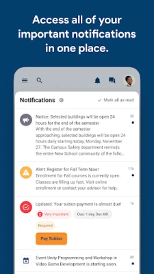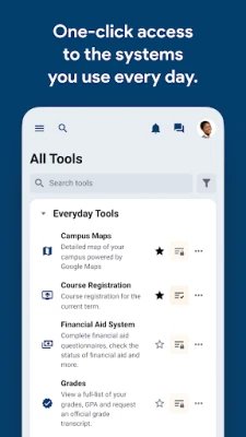- Connect with departments, services, clubs, organizations and peers.