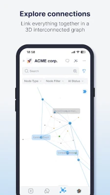 - Save all data types (files, websites, audio, notes, etc.) in an interconnected 3D visualiser