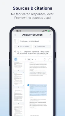 - Every response includes a reference to the original source, paragraph and page of the information