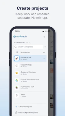 myReach integrates with popular tools like Google Drive, Evernote, Zapier and more, to optimise workflow management. With ISO 27001 certification and AES-256 bit and TLS 1.3 encryption, your data remains secured and protected.