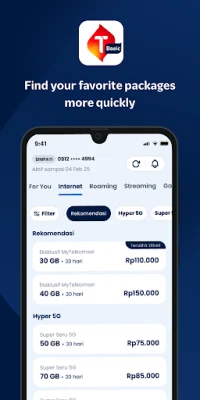 Our best package recommendations are now displayed on your Homepage—helping you discover the most frequently used Telkomsel internet packages. Checking your remaining internet and voice quota is also quicker than ever.
