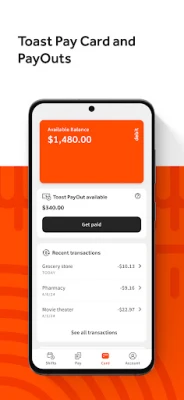 • If made available by the employer, team members can order and activate Toast Pay Card to get instant access(1) to a portion of their pay(2).