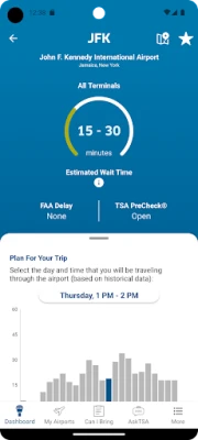 + Quickly search which items you can bring with you through the checkpoint onto the airplane. + Request live assistance from TSA through the AskTSA social media integration. + Check how historically busy the airport will be on your specific day and time of travel. + Check crowd-sourced TSA security checkpoints wait times at the airport of your choice. + Add your own TSA security checkpoints wait time for others to see (NOTE: You must be at the airport in order to report wait times). + Check the delay information and current weather conditions at your favorite airports nationwide. + Consult the TSA Guide on how to prepare for and get through the security checkpoint quickly. + Discover which airports and airlines support TSA PreCheck®, and learn how to sign-up.