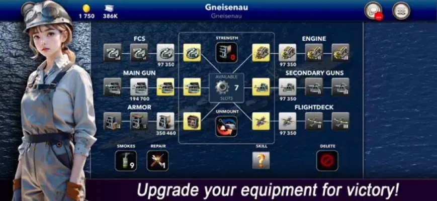 Customize and upgrade your ships for different types of performance! Choose your own strategy based on big guns, torpedoes, hedgehog, fighters, dive bombers, torpedo bombers, mine and airstrikes. Train your crew to get best ship's performance.