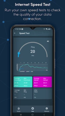 > Retain a history of your tests, to understand how your internet connection, data speeds, mobile and Wi-Fi coverage performance changes overtime