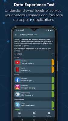 > Check whether connectivity is good enough for popular messaging, video calling, social networking, video streaming and gaming applications