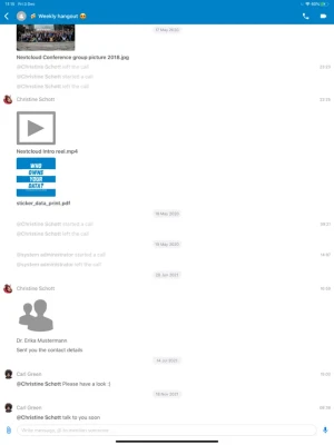 Use Nextcloud Talk to have one-on-one or group audio or video calls, create or join web conferences and send chat messages. All communication is fully encrypted and mediated by your own server, providing the highest degree of privacy possible.