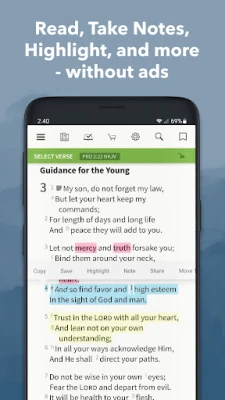 You can highlight and save your favorite passages, drop a book ribbon, create a note, add tags, and sign up to receive a daily Bible verse. Best part? Your highlights, notes, and resources sync between all your devices.