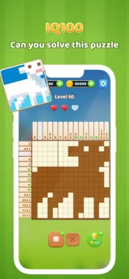 Solve logic number puzzles to get fabulous pixel arts and win diamonds to build your farm!