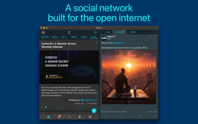 Nostur is a social media client for the nostr network. The nostr network is an open, public, shared network, not owned by any single company.