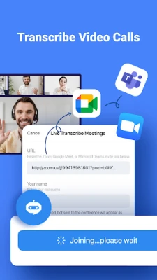 - Auto-transcription for web meetings (Zoom, Microsoft Teams, Google Meet, Webex)