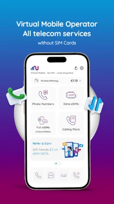 Numero eSIM offers a range of advanced features to enhance your communication experience. Enjoy international WiFi calling at affordable prices, personalized voicemail on your virtual SIM or second phone number, call forwarding, and the ability to hide your 2nd phone number/2nd line for private calls. Experience the convenience, privacy, and global connectivity of Numero eSIM. With Numero, get a free USA number to use as a second phone number from the Free Coins Center in the App.