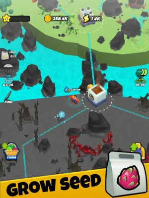 Once green and fertile, these lands are now ensnared by vines and darkness. But hope is not lost! At the heart of your green area lies a magical water building. As you upgrade this building, your green area expands, replacing the dark world with a vibrant, lush paradise.
