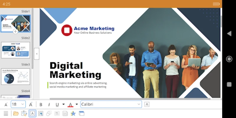 Presentations brings the features of a desktop presentation program to your Android device. You shouldn't settle for less.