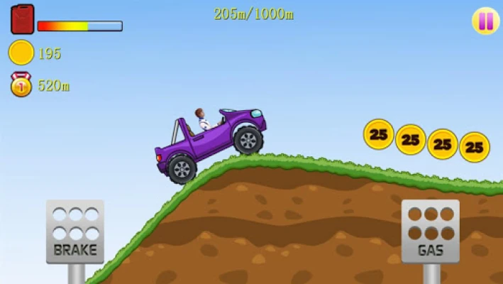 Face the challenges of unique uphill & downhill environments with your different Offroad Cars.Control your Pickup,Jeep or Sportscar to climb mountains with gas and brake.Collect coins to upgrade your car and reach even higher distances!Watch out the progress bar of fuel,You need to supplement fuel before the car run out of fuel!It is a perfect game for everyone who is into racing games!