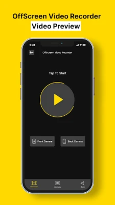 Offscreen video Recorder records videos even when your device's screen is off or while you are using other apps is its most important feature. This entails that you can begin recording, lock your device, or carry out other actions on it while the recording is still being made in the background. Video Recorder is useful for offscreen video recording with front camera and back camera in the background.