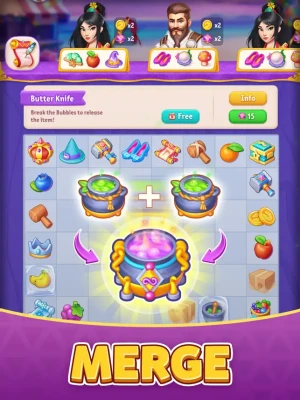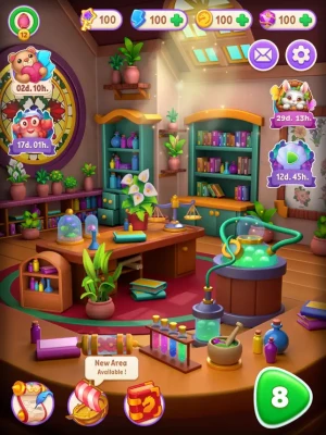 Merge & Create: Match and merge items to unlock new magical objects and resources.