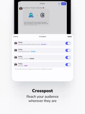 Connect Across Platforms Effortlessly: Post once, reach all. Openvibe makes it simple to share your moments, thoughts, and discoveries across multiple networks, amplifying your voice and expanding your reach.