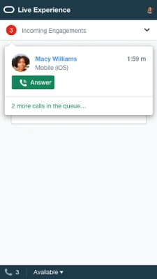 Associates can receive engagements on their mobile device even when they have the app in the background or when their device is locked. Once logged in, associates can manage their queue and availability status. They can review end user’s real-time context before accepting the incoming engagement and effectively engage them on the right channel. Associates can proactively initiate 1:1 meetings, send SMS or escalate their current engagement with the end-user from voice to video and/or add screen share and annotate on shared screen or video.