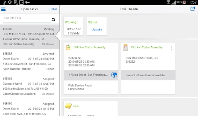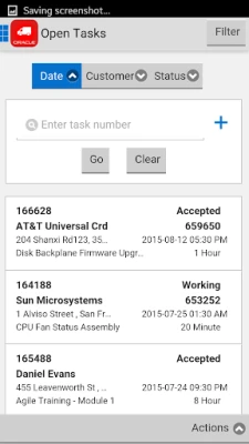 Oracle Mobile Field Service for Mobile Devices allows field service technicians to remotely access customer, product, service request and task related information. Technicians can continue to update their tasks, capture materials, time, expense details, access inventory levels, return, transfer and request parts regardless of the internet connectivity and synchronize when they are online.