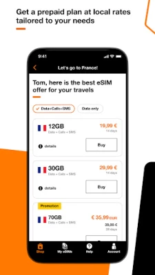 Don’t worry about staying connected in 4G or 5G during your trip abroad. With Orange Travel app, you can buy from home, top up and manage a generous local eSIM plan comfortably, in a few clics and avoid roaming fees.