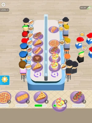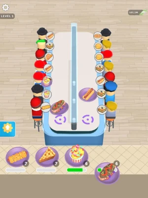 Your goal is:unlock foods, sort them properly, increase your income, and boost the cooking.