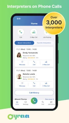 ① 3-WAY CALL: Need to make a phone call to a bank, clinic, city hall, or any foreign administration, but don't speak the language? Include a professional interpreter in the call through Oyraa, and let them facilitate the conversation!
