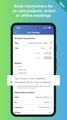 With a simple touch, connect with over 2,000 professional language assistants for voice calls, video calls, or even to schedule them for online meetings and conferences.