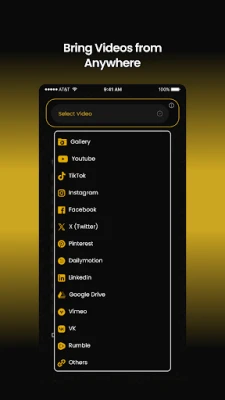 Device Gallery, YouTube, Facebook, Instagram, TikTok, LinkedIn, X, Dailymotion, Google Drive, Vimeo, Pinterest & public video URLs