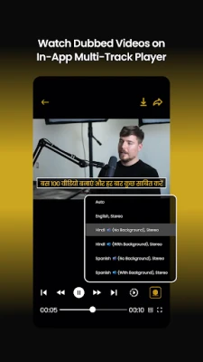 ✓ In-App multi-track Player to stream translated videos with all dubbed audio and subtitle (cc) tracks