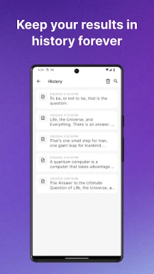 - Full History: The app saves all your paraphrased texts, providing you with easy access to previous work. This ensures that no content is lost, and you can revisit your paraphrases whenever necessary.