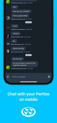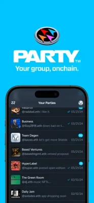 Party is the best way to create a group on Ethereum. Form a group, chat with other members, and do things onchain together. The Party mobile app lets you chat with all your Parties from your phone. Never miss a message when you’re on the go. Download the app and have all your Parties in your pocket.